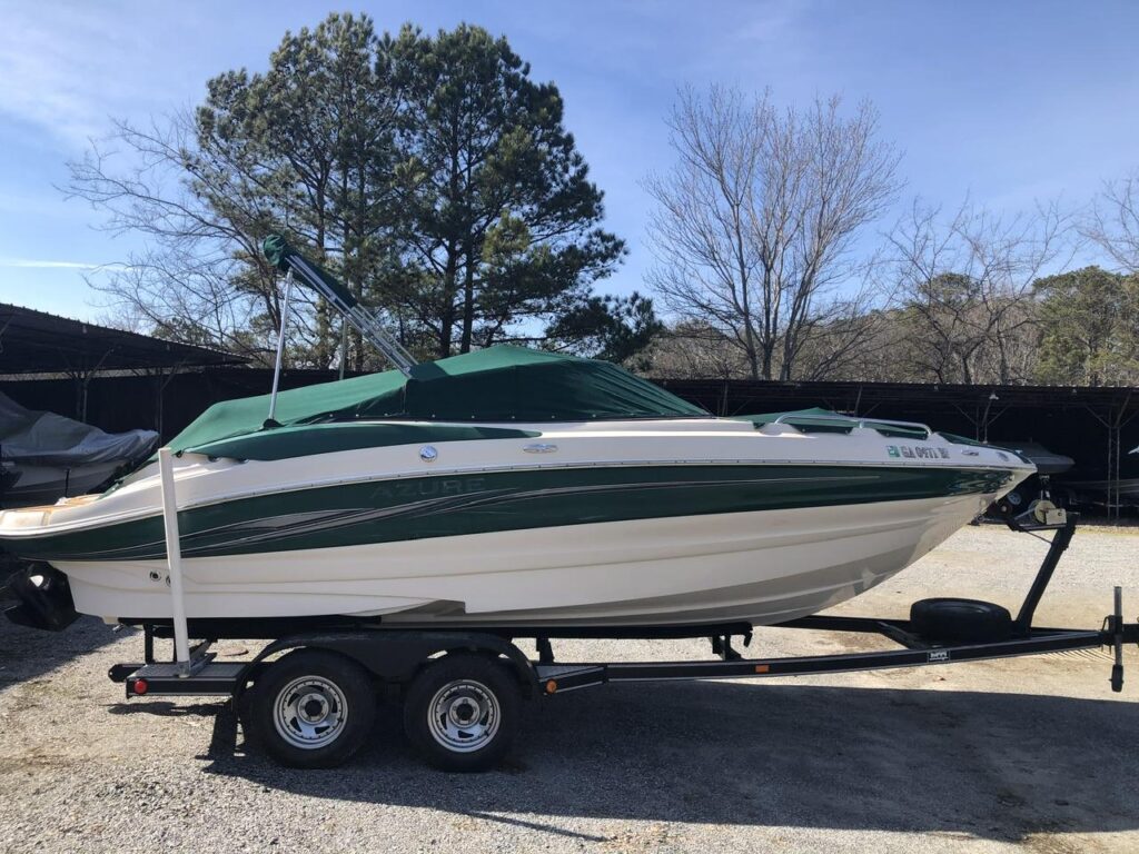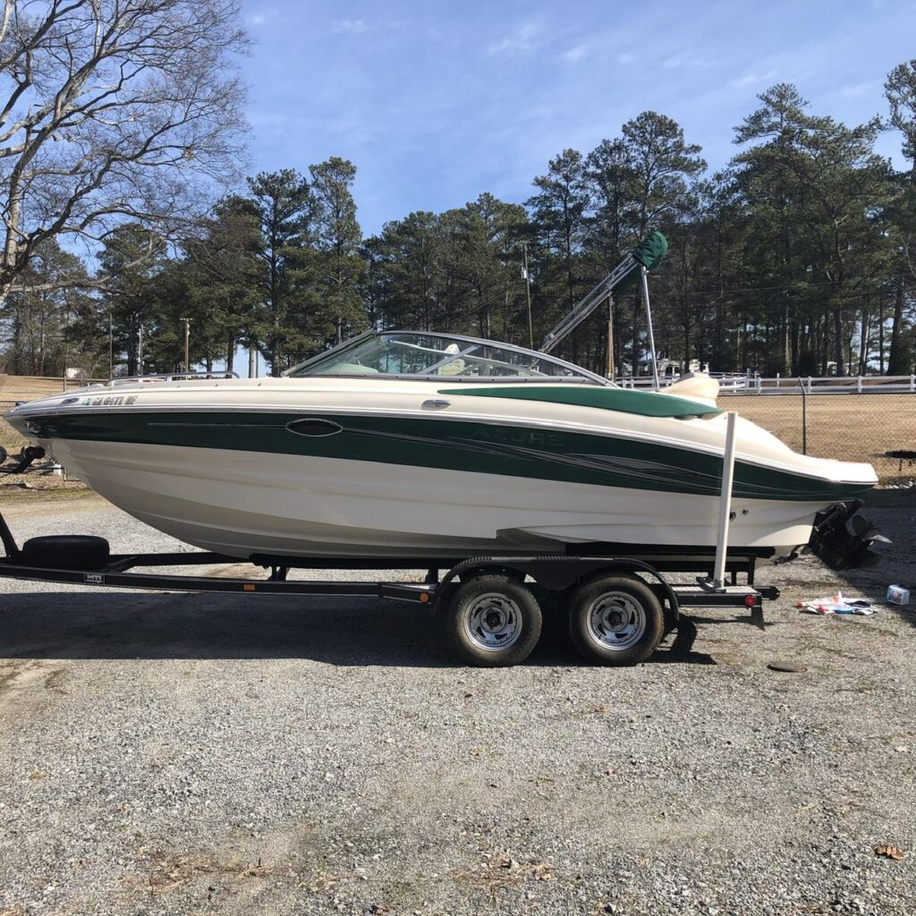 OPTIONS:Lowrance GPS/fish finder, Bluetooth stereo w/ JBL speakers, HydroDeck, Extended Swim Platform, Docking Lights, Docking Bumpers, Life vests, Dock lines, Anchor, New Bimini Top, Cockpit and Bow Cover, Black Frame Trailer with Black Fenders and Crome Wheels