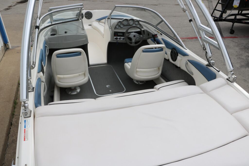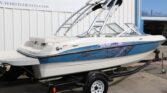 Mercruser 4.3 Mpi 220hp w/ 259 hours, six month engine warranty, wakeboard tower, bimini top, wakeboard rack, flip-up bolster seats, tilt steering wheel, am fm stereo w/ Mp3, walk-through transom, extended swim platform, stainless steel rub rail, Mirage stainless steel prop and custom trailer. Bank financing : $5000 Down 84 months @ $294. Pre-owned sales