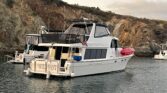 Custom flybridge stainless railing, like new cozy flybridge deck furniture w/ Sunbrella covers, Sunbrella covers throughout vessel, swim step 2” railing with Magma fillet table, Magma BBQ w/cover and 3 mounting options – including flybridge. 3 reverse cycle heat and air Dometic Marine Air Systems. Magma Rock ‘n Roll stabilizer system – 2 qty (R110-702) with 1 Outrigger (R10-707). Seaward 20-gallon water heater. The pulpit is rigged with an electric Lewmar Windless and a CQR Anchor with 5/16” all chain rode. And on the stern, there’s Fortress Aluminum stern anchor with Simpson – Lawrence electric windlass. Avonite galley countertop. Electric range & oven, microwave, Norcold Fridge/freezer, wet bar, ice maker, washer/dryer, like new 120 qt. Premium Marine Cooler (flybridge). All life vests will remain on vessel.