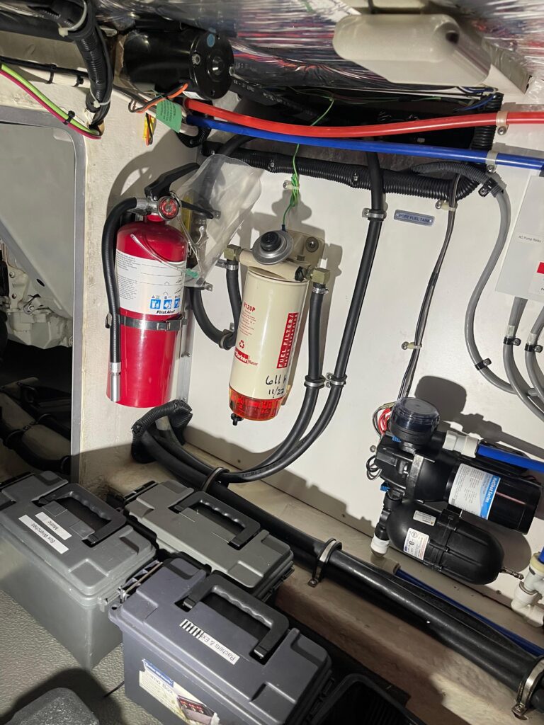 HOLD FAST is powered with reliable twin Cummins 330 diesels. The Westerbeke generator 8.0KW-60Hz has 480 hours. Both main engines have been serviced with oil/fuel filter changes, zincs, thermostats, coolant and intake impellers in 2023. In 2021 both main engines had the heat exchangers, after coolers and gear coolers completely serviced. Additionally in 2021, both main engines were upgraded with fuel cooler bypass and EnviroVent CCV kit. In 2022 both serpentine belts replaced. Rebuilt flybridge steering helm 2022. Replaced holding tank pump (macerator) late 2022.