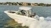 The 240 Vantage is a true “do-it-all” boat, delivering remarkable versatility and comfort. With an array of smart features for fishing, cruising, beaching, watersports and entertaining, this spacious dual console model is perfect for active families eager to enjoy everything the water has to offer. Plus, it’s incredibly low-maintenance and easy to operate, making it a great choice for novice and experienced boaters alike. And with its sleek flared hull and sharper bow profile, the 240 Vantage is exceptionally stable, safe and seaworthy, no matter what’s on the day’s agenda.