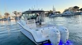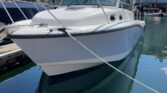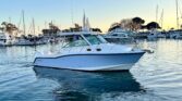 The 315 Conquest is a fishing machine and pleasure boat that has it all: enhanced utility, ultimate convenience and stylish comfort. The boat features a host of functional and aesthetic upgrades that are bound to impress avid freshwater or saltwater anglers and those who favor luxury cruising. A full front glass windshield with open sides and a sheet glass enclosure provide a pristine, unobstructed view from the helm, while an insulated 30-gallon livewell/cooler, increased bait prep storage, and dual in-deck fishboxes ensure the diehard sport angler has everything he needs to get on the fish. The boat’s cabin features yacht-quality interior styling, including a skylight over the galley, and an expanded mid-berth with improved headroom and flexibility for bringing on extra family members and friends. Master the offshore with the power and fishability of the 315 Conquest.