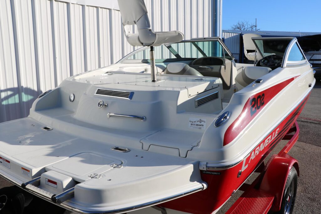 Mercruiser 4.3L V6 190hp, six month engine warranty, bimini top, am fm stereo w/ Bluetooth, tilt steering wheel, flip up helm seats, two casting seats, livewell, extended swim platform, pull up cleats and custom trailer. Pre-owned sales 972-221-7070