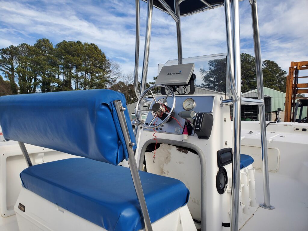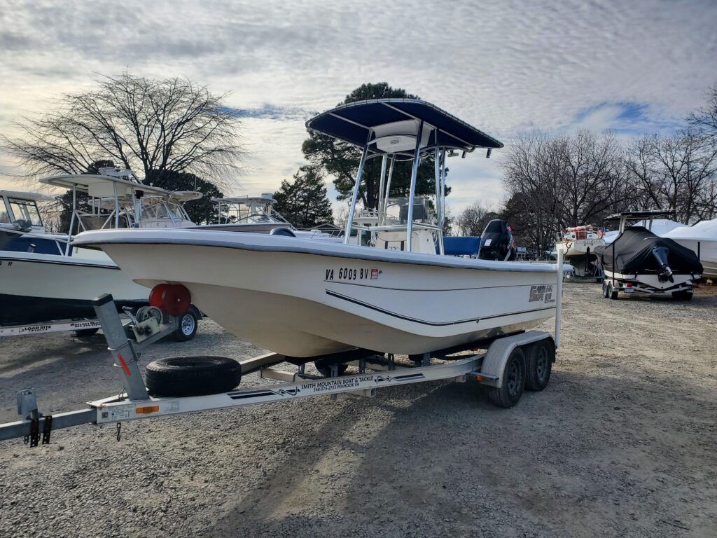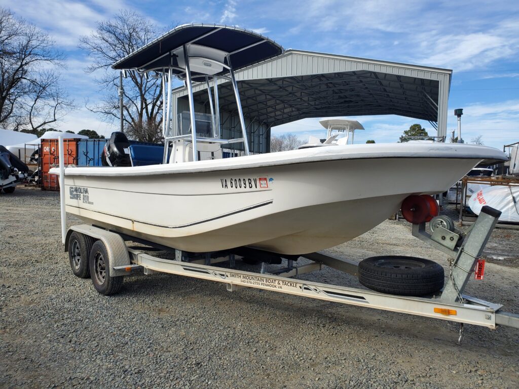 2008 CAROLINA SKIFF 218 DLV WITH A 2008 SUZUKI 140 HP WITH 615 HOURS AND A LOAD RITE ALUMINUM BUNK TRAILER ALUMINUM T TOP AND A GARMIN 840 XS DEPTHFINDER/ FISFINDER /GPS