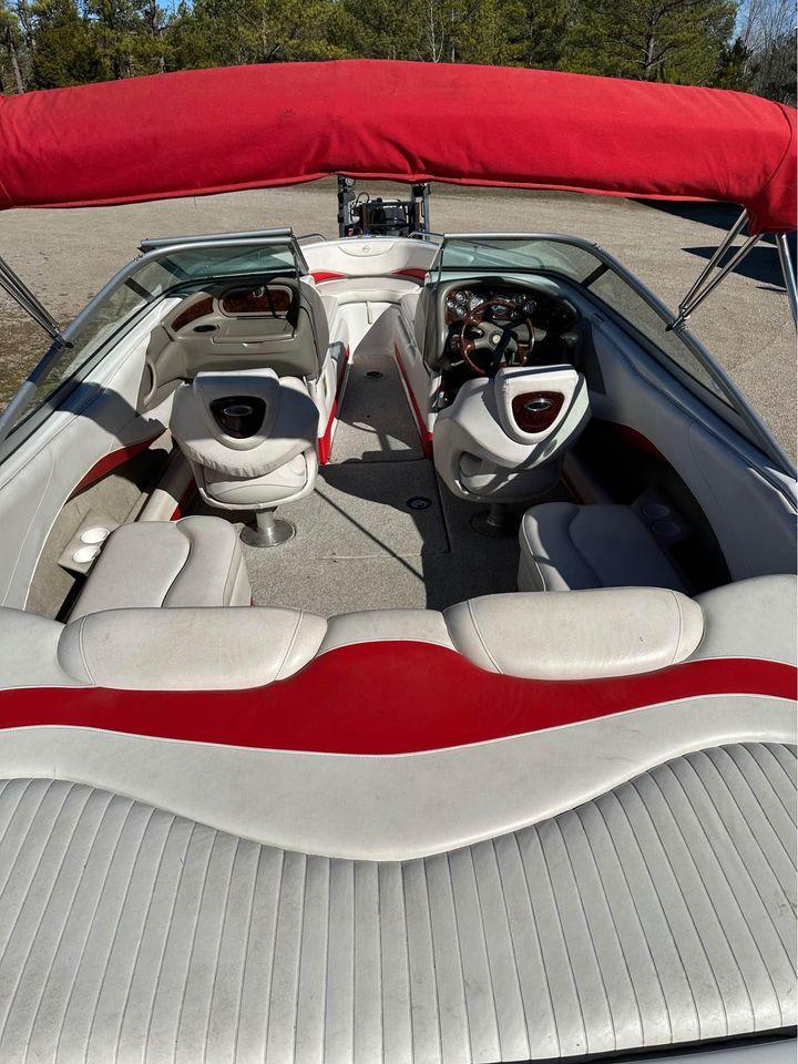 This is the cleanest 2004 Crownline 225 available!! Only 220 hours on the Mercruiser 350 MAG MPI!! Captains Call Exhaust, Upgraded Stereo w/Aux Port & Bluetooth, Digital Depthfinder, Extended Swim Platform w/Boarding Ladder, Quality Materials, Quality Ride, Just Serviced! Ready for Summer!