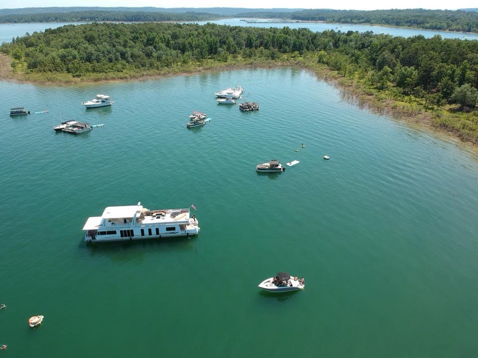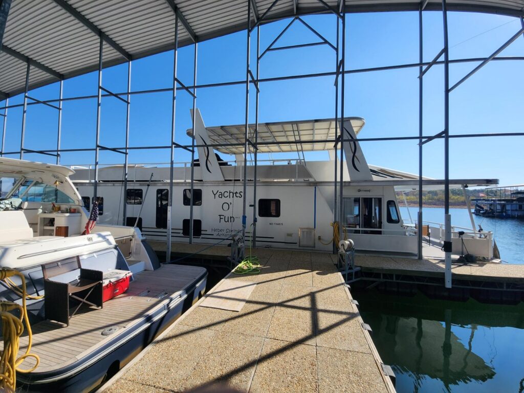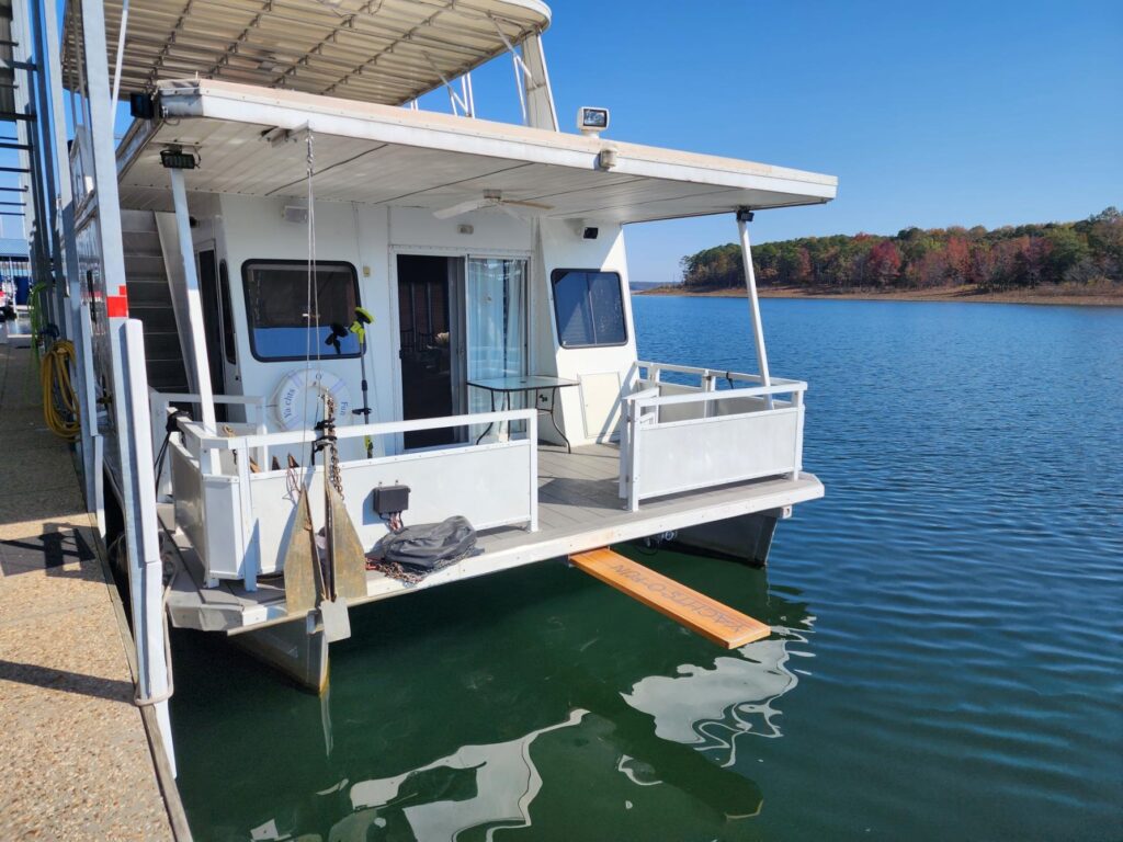 The houseboat is currently located at Eden Isle Marina on Greers Ferry Lake.