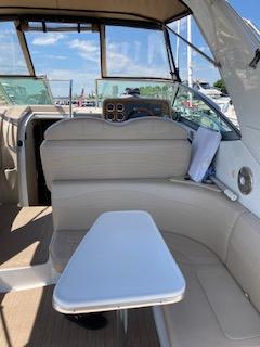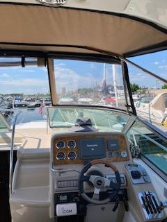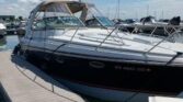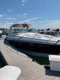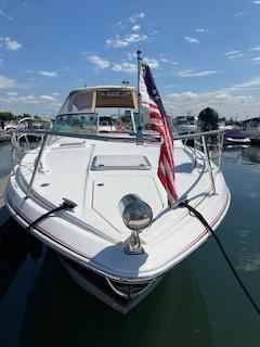Powered with twin 496 Mag and bravo 3 drives with showers. Bottom paint, new camper canvas & glass in 2022, mooring cover, cherry cabinet doors, Corian Counter tops and 2 tv’s. Central vacuum, microwave, stove top, cabin & cockpit fridge, a/c- heat , new batteries and Fusion stereo in 2022. Vacu flush head, shower, Kohler 7.3 ECD generator, windlass with chain, remote spotlight and halon system. CO detector, trim tabs with indicators, bow cushions, bow fender racks . 2023 new mid ship bilge pump, new spark plugs and fuel injectors cleaned.