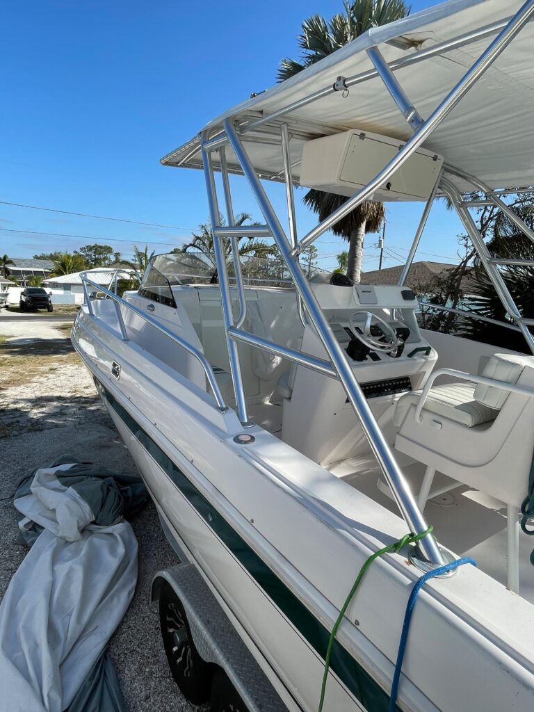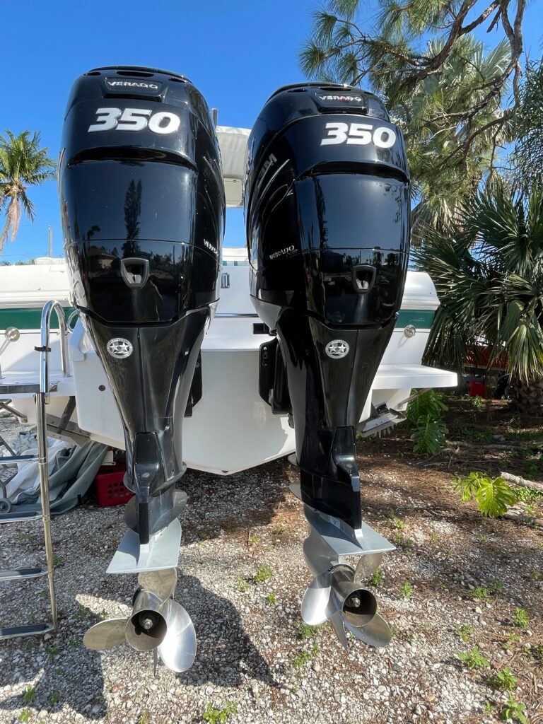 339 Walkaround is in perfect condition and a great outfit for cruising, fishing or even crossing. It features a large shaded area, roomy cockpit and very comfortable seating. This boat was repowered and has only 650 hours on the engines. She comes with a triple axle trailer and was just outfitted with a new boat cover.