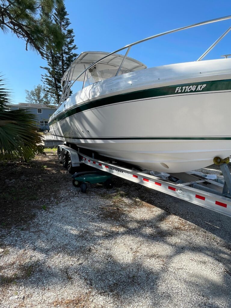 339 Walkaround is in perfect condition and a great outfit for cruising, fishing or even crossing. It features a large shaded area, roomy cockpit and very comfortable seating. This boat was repowered and has only 650 hours on the engines. She comes with a triple axle trailer and was just outfitted with a new boat cover.