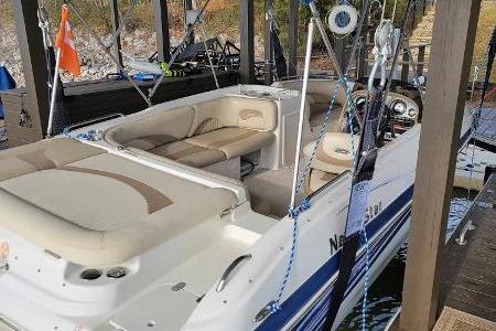 Runs great. New carpet, New Radio, New Speakers, New bildge pump, New Seats. This boat is in great shape, espcially for it’s age. The only reason we are selling is because we bought a bigger boat. The boat is stored on our lift, under cover. It also has a full canvas cover. It has a swim ladder, on both the bow and stern, for easy access, back into the boat. Nice large swim platform. Lots of storage. Small table, for lunches, in the cove. this boat has been professsionally serviced and maintained, by local marina. The engine is always winterized and de-winterized, by them. They also do the oil change and any servicing needed, twice a year. I have the boat detailed, every year.