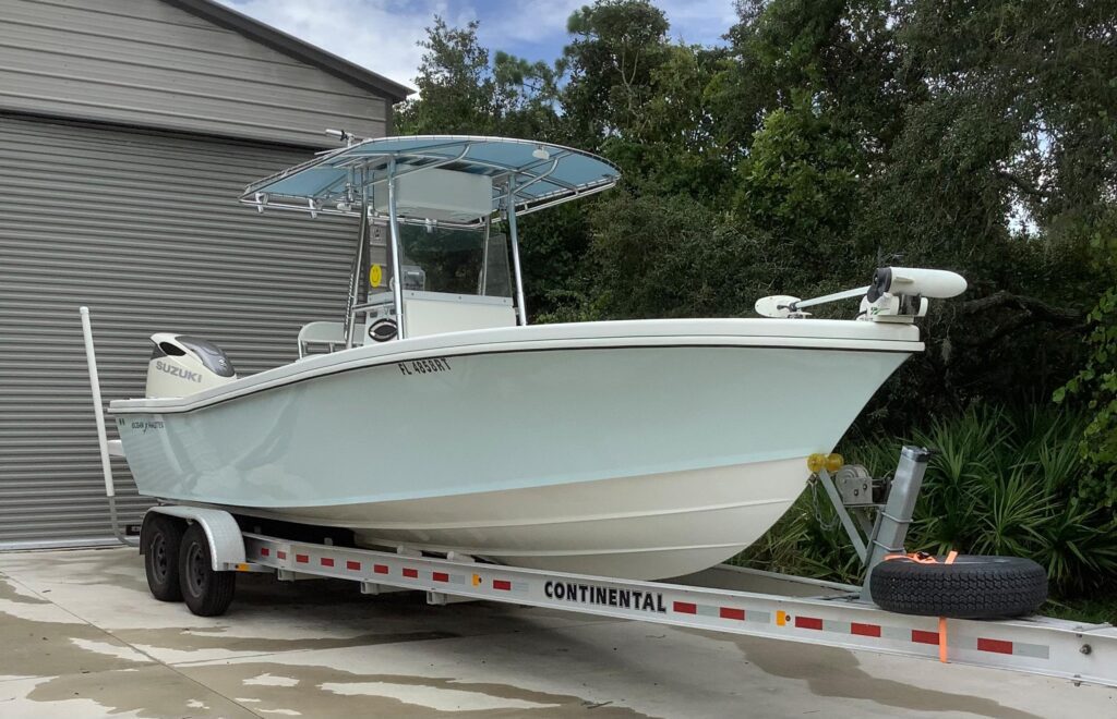 This Ocean Master 296 is a one owner always garage kept boat. It has been meticulously maintained from day one. Motor has warranty until April 2025. Please see picture of sales agreement for a list of all the features. Beam is 8’6″. 24″ draft. Boat was custom built by Ocean Master for this avid fisherman. A Rodan 36v w 84″ shaft trolling motor is included. Continental dual axle trailer with brand new brakes included. 10 year limited warranty until 2028 on the hull. This boat, motor, and trailer is in perfect condition. Must see in person to appreciate.