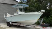 This Ocean Master 296 is a one owner always garage kept boat. It has been meticulously maintained from day one. Motor has warranty until April 2025. Please see picture of sales agreement for a list of all the features. Beam is 8’6″. 24″ draft. Boat was custom built by Ocean Master for this avid fisherman. A Rodan 36v w 84″ shaft trolling motor is included. Continental dual axle trailer with brand new brakes included. 10 year limited warranty until 2028 on the hull. This boat, motor, and trailer is in perfect condition. Must see in person to appreciate.