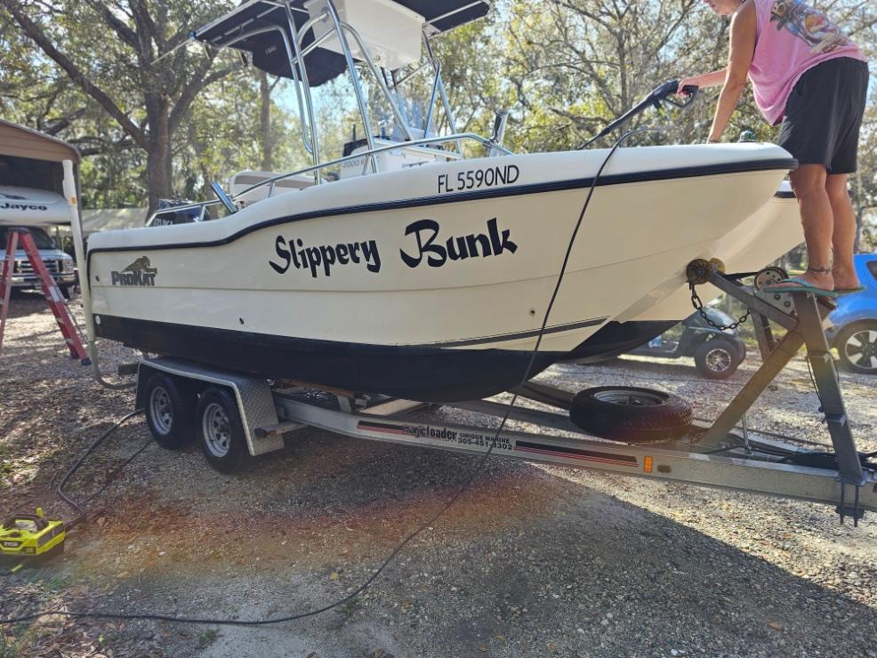 The trailer has been upgraded with new bunks, HDPE glides over the bunks, new Demco hydraulic surge brakes and completely rewired for lighting. Tires, including spare, new in 2022. Bearings have been completely greased prior to each trip to the keys. A ladder was added to the trailer for access to the boat while on the trailer. All new springs and hardware in 2022.