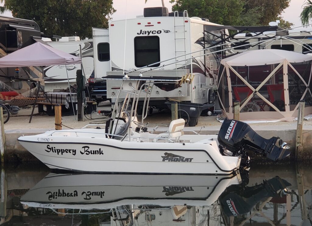 The trailer has been upgraded with new bunks, HDPE glides over the bunks, new Demco hydraulic surge brakes and completely rewired for lighting. Tires, including spare, new in 2022. Bearings have been completely greased prior to each trip to the keys. A ladder was added to the trailer for access to the boat while on the trailer. All new springs and hardware in 2022.