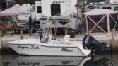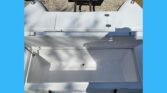Slippery Bunk has a live well, 3 tackle storage compartments, 4 rocket launchers, 4 gunwale rod holders, and 4 additional rail mount rod holders. There are also 3 lightweight rod holders mounted to the backside of transom. It has a mammoth fish box in the bow with another small storage area under the seat in front of the center console, anchor with 100′ of anchorline, marine radio new in 2022 in center console dry box with external speaker. It has a transom tuna door and there are bilge pumps in each sponson. It is equipped with fore and aft spreader lights and a navigation compass. Lenco trim tabs are installed.