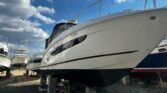 The bow is accessed via centerline steps molded into cabin entry door. Once through the openable windshield access door, you will find a non-skid surface leading you to a forward bow lounger for two trimmed in Sunbrella fabric. Forward of that area you will find the bow pulpit area with a power windlass with foot controls, and an anchor locker. A powered remote-controlled spotlight is also located in this area.