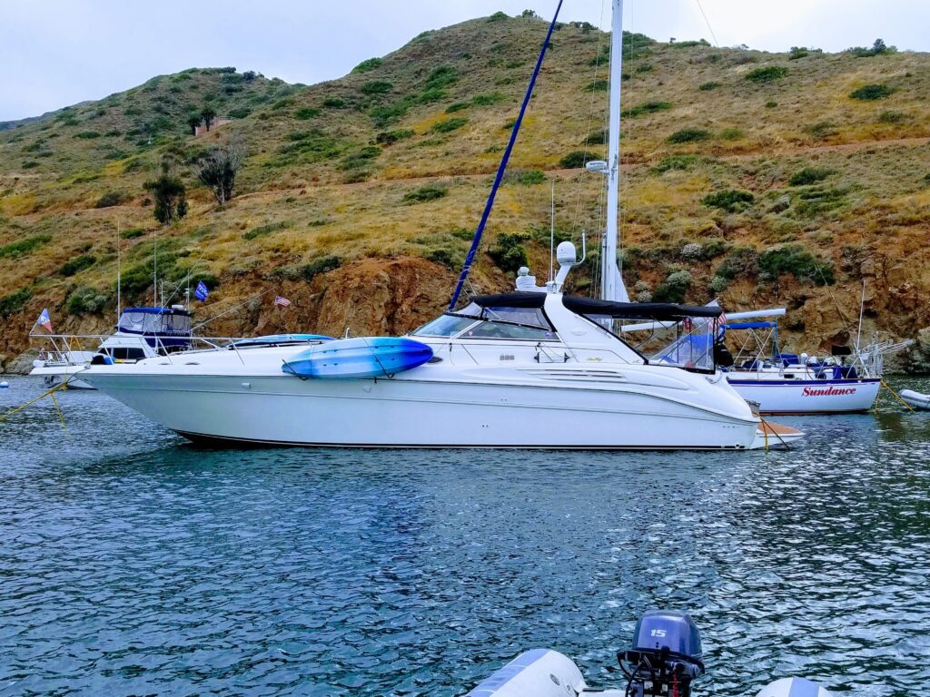 This 450 Sundancer is the model that has lots of head room with a spacious layout. You can stream TV or music while entertaining your friends ad family in the fully enclosed cockpit. Stratoglass and Macrolon done in 2018. The sound system is a dream. Enjoy your tunes at sea…