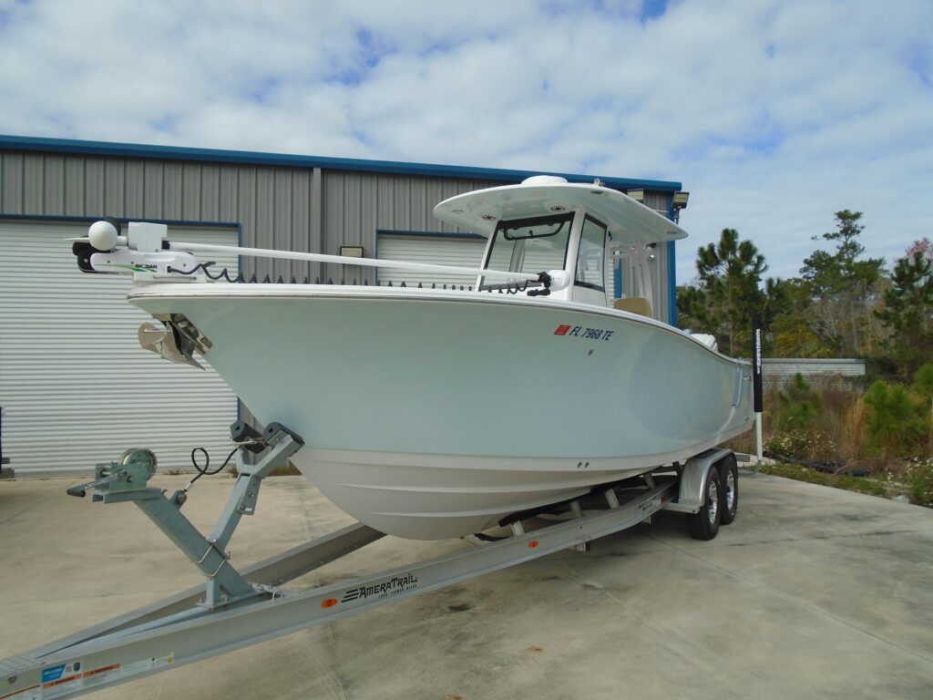 2022 SPORTSMAN 282TE W/TWIN YAMAHA 300'S, HULL SIDE STORM ICE BLUE, TAN UPHOLSTERY, COFFIN BOX MACERATED, LEANING POST TACKLE CENTER W/ SINK, TWO GARMIN 12" DISPLAYS, GARMIN GMR18 DOME RADAR, TOLLING MOTOR , CHARGER, LITT BATTERYS , PLUS ALL STANDARD FEATURES YOU'VE COME TO LOVE WITH SPORTSMAN ! 180 HOURS UNDER WARRANTY . Trailer INCLUDED