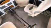 Clam-shell fishing chairs constructed w/all-composite seat frames w/heavy-duty 2-3/8″ (6 cm) diameter pedestals