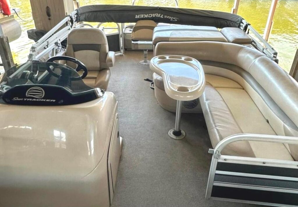 This nice 2015 Sun Tracker Fish N Barge 22 Deluxe XP3 Tritoon is powered by a big 2017 model Mercury 150hp four stroke outboard engine with little use in freshwater. Other features include bimini top, cockpit table, lots of storage, two rear fishing seats, two forward fishing seats, live well, rod holders, rod storage, Jenson Marine Audio stereo, full cover, Minkota remote controlled trolling motor, Hummingbird 688C GPS/sonar fish finder and much more. All new batteries installed August 2023.